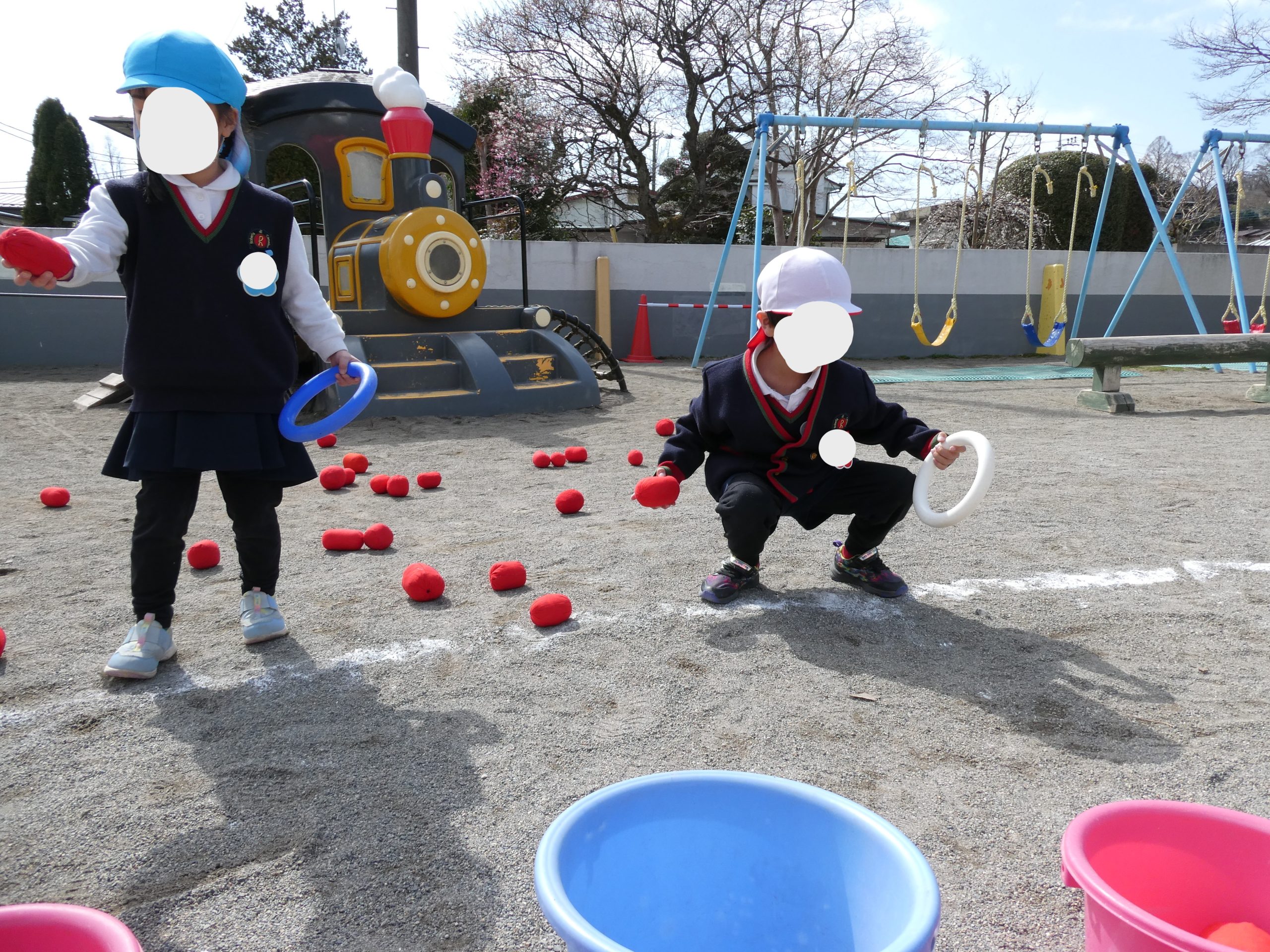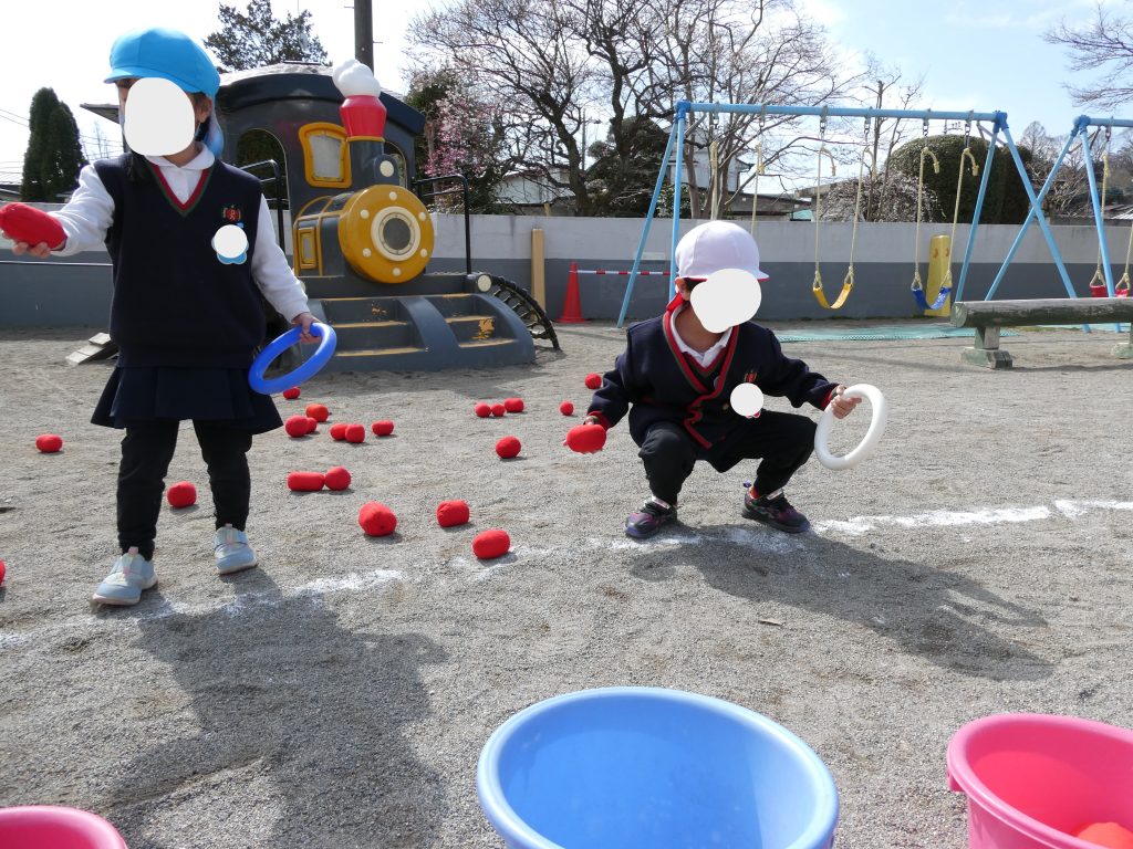 年少・年中組の子どもたちは年長組のお兄さんお姉さんに甘えてみたり、頼りにされるのが嬉しい年長組の子どもたちの姿が可愛かったです。
