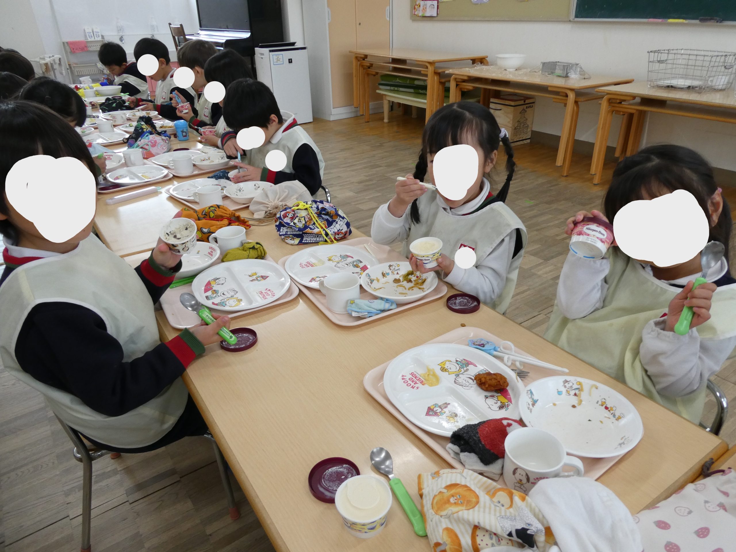 給食には年に一度のお楽しみのハーゲンダッツのアイスに子どもたちも嬉しいそう♡