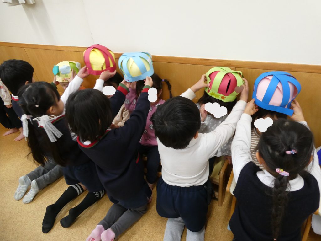 年長組からは、いつもありがとうの気持ちを込めた王冠👑をプレゼントし合いました。